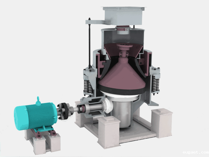 当圆锥式betvlctor伟德官网app工作时,电动机的旋转通过皮带轮或联轴器、 传动轴和圆锥部在偏心套的迫动下绕一固定作旋摆运动,迫使破碎壁时而靠近时而偏离固装在调整套上的轧白壁表面,这样矿石会在破碎腔内受到不断的冲击、挤压及弯曲作用而实现矿石的破碎。